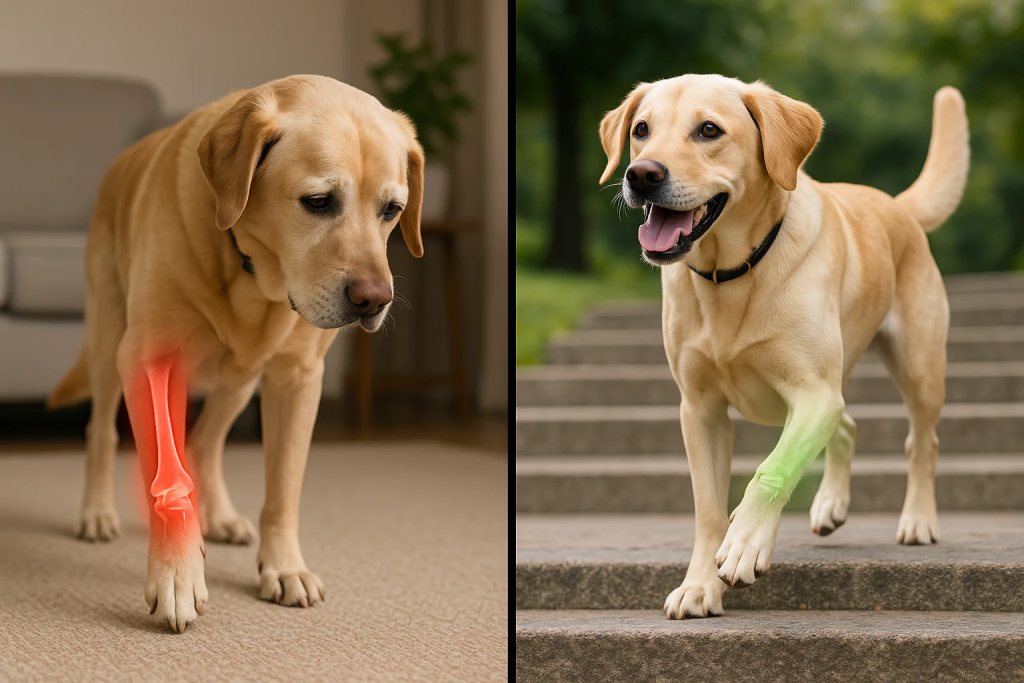 Wenn ein Hund älter wird, verliert er zunehmend an Gelenkflüssigkeit – die Substanz, die den Knorpel nährt und schützt.