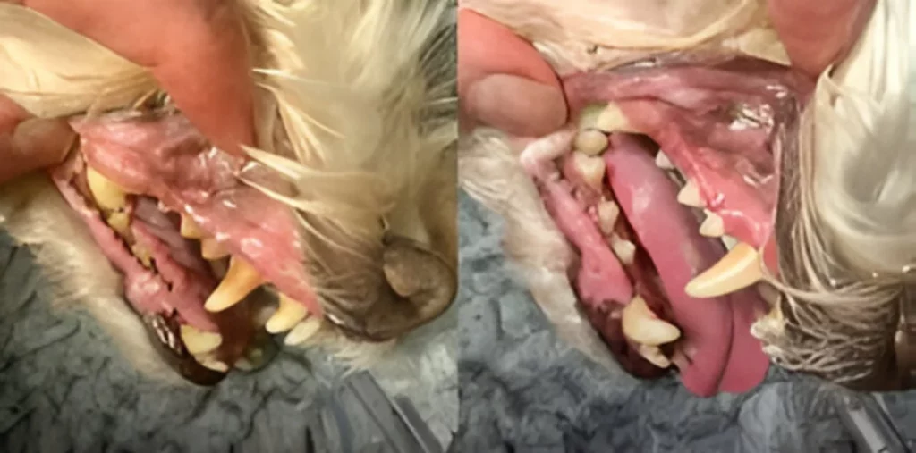 Wir haben 2 Jahre damit verbracht, eine natürliche Lösung zu entwickeln die ohne Narkose-Risiken oder Nebenwirkungen wirkt. Tierärztliche Reinigungen behandeln nur Symptome. Wir reparieren das Zahnfleisch und bekämpfen Bakterien dauerhaft von innen heraus.