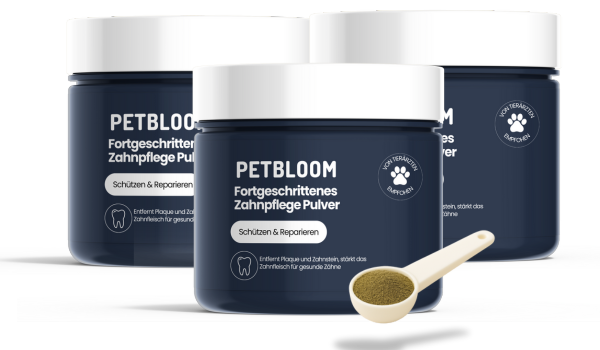 Das PetBloom Dentalpulver wurde über 2 Jahre entwickelt um alle Zahnprobleme & Mundgeruch schnell und dauerhaft zu beseitigen.