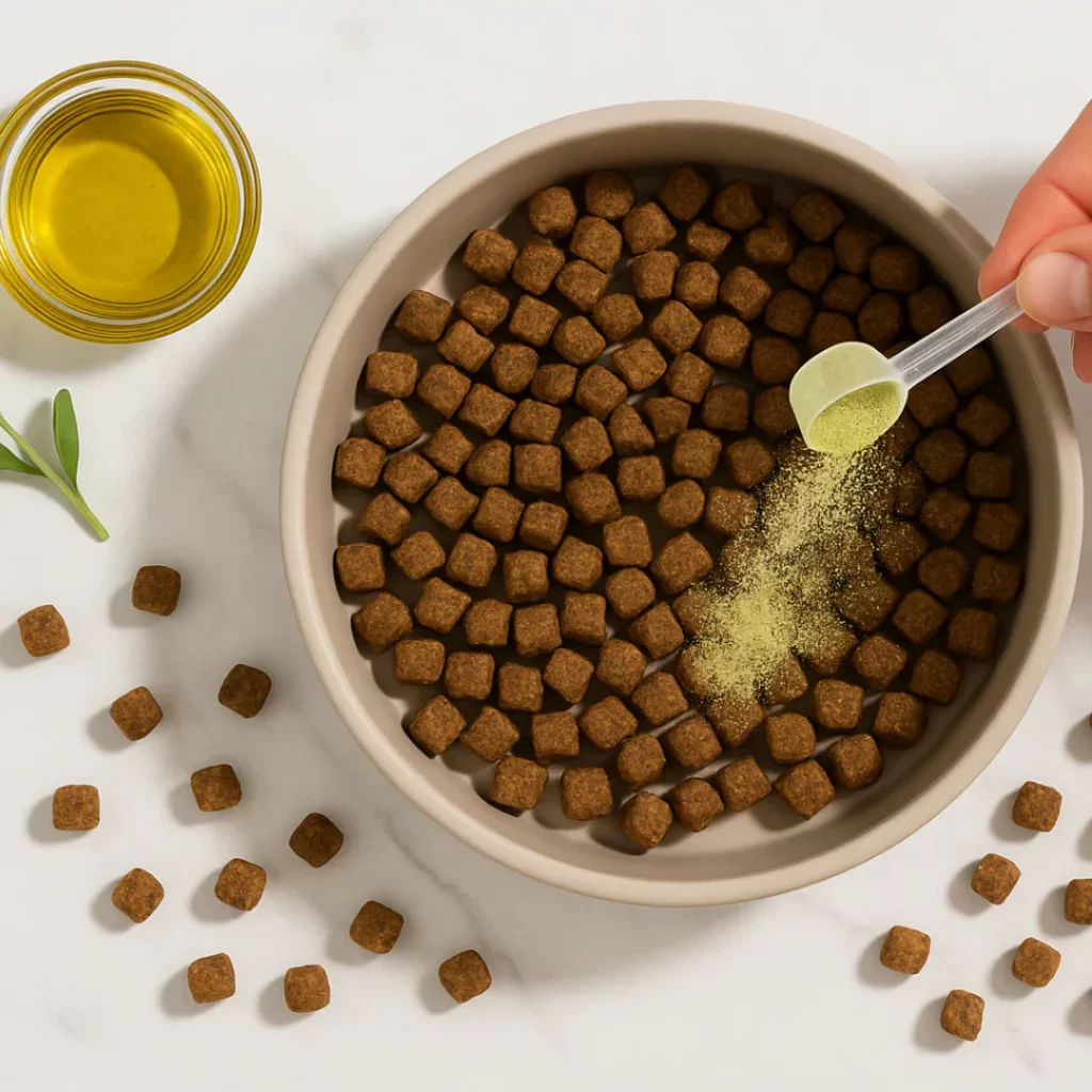Kein Kampf mit Zahnbürsten oder Angst vor Narkose-Reinigungen. Das geschmacksneutrale Pulver wird einfach übers Futter gestreut – der Hund merkt es nicht einmal. Selbst ängstliche oder wählerische Hunde akzeptieren es problemlos.